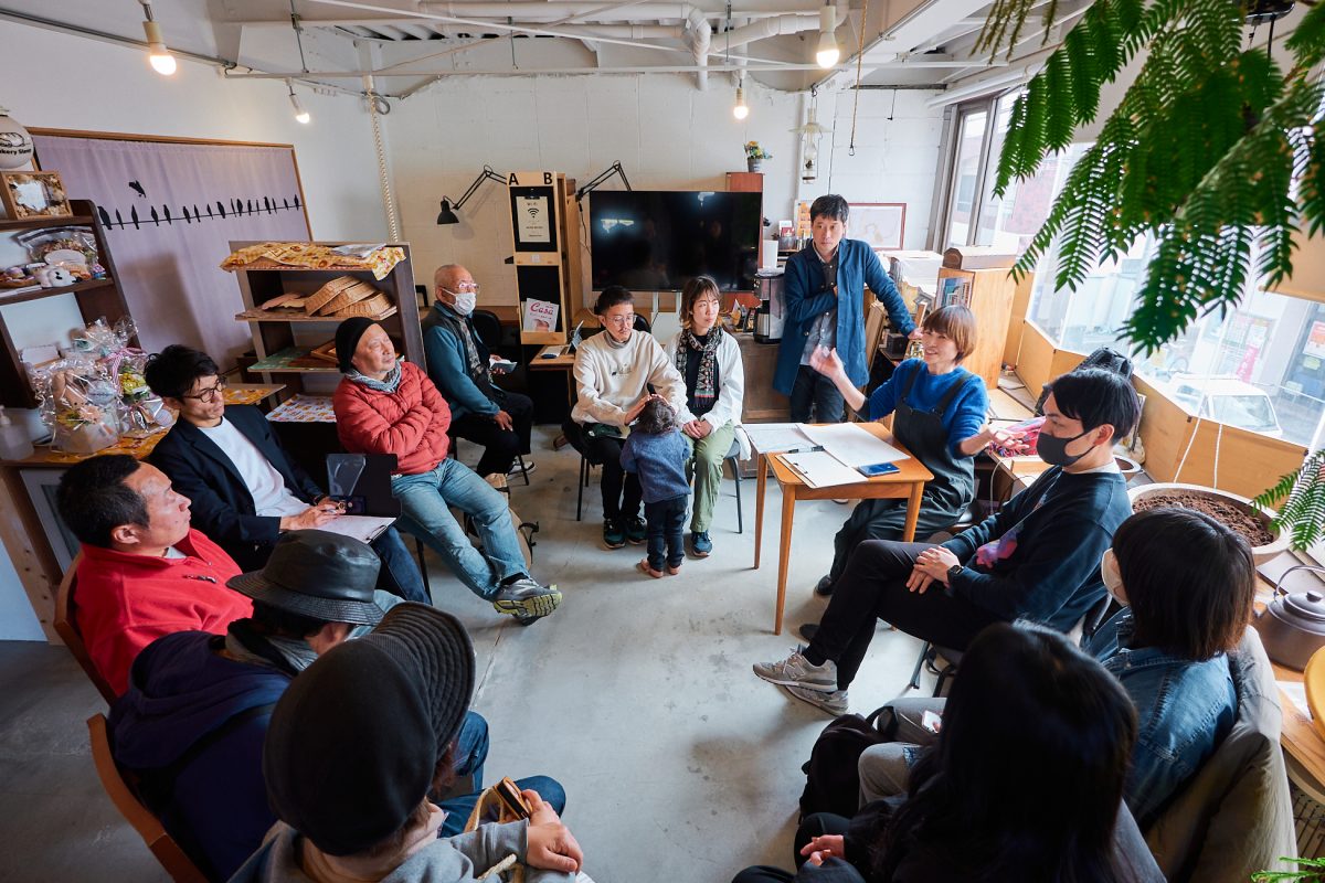 約30分のまちあるきを終えた後、座談会の場で妄想が共有されました。商店街の空き店舗に食べ歩きと立ち飲みができる小さな飲食店を連ねること、公園の階段を客席にして屋外で映画を上映すること、川の飛び石に絵を描くこと、クリスマスマーケットを開催してトナカイを呼ぶことなど、多様なアイデアが次々と挙げられました。
