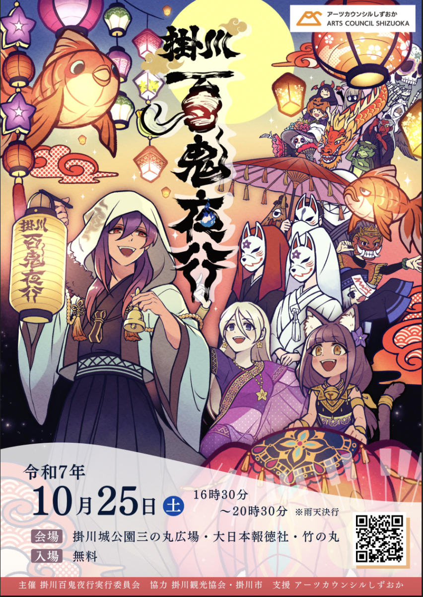 2025 年 10 月 25 日(土)、掛川百鬼夜行実行委員会は静岡県掛川市掛川城公園及び周辺(三の丸広場、大日本報徳社、竹の丸)にて、和装ハロウィンイベント「掛川百鬼夜行第四夜」を開催します。