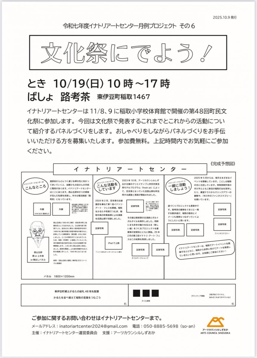 今回は、11月8日(土)9日(日)に稲取小学校体育館で開催される、第48回町民文化祭にイナトリアートセンターとして参加するため、文化祭で展示するパネルづくりに取り組みます!
