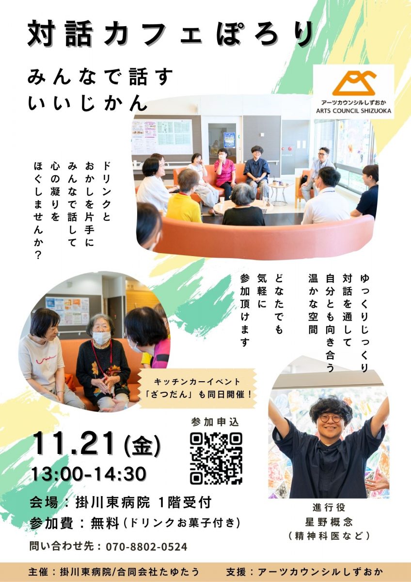 合同会社たゆたう(掛川東病院)は、気軽に話せるきっかけ作りを目的とした病院玄関先のイベント「ざつだん」を継続開催しています。