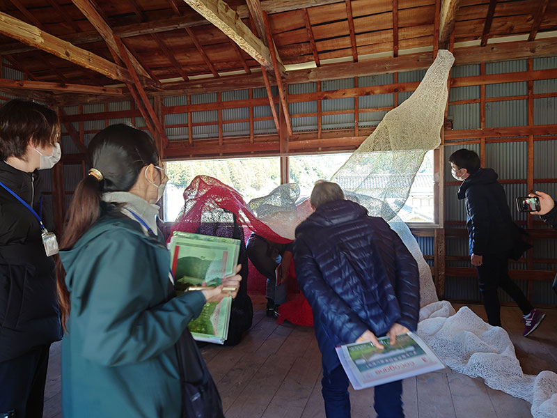 そのため、県の各地域局職員や、観光、移住、文化等に携わる市町職員、まちづくりや文化関連団体の構成員などを主な対象として、実際にアートプロジェクトの現場を見てもらう視察研修を実施しています。視察を通して、参加者がアートを活用した地域づくりのイメージを広げ、今後の活動に活かされることを期待しています。