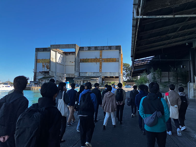 アーティストの制作過程のプロセスを共有していくことで、まちの魅力や課題に可視化につながる「アーティスト・イン・レジデンス(AIR)」を取り上げ、2025年度地域振興プログラム助成事業の「用宗アートプロジェクト」を視察した。